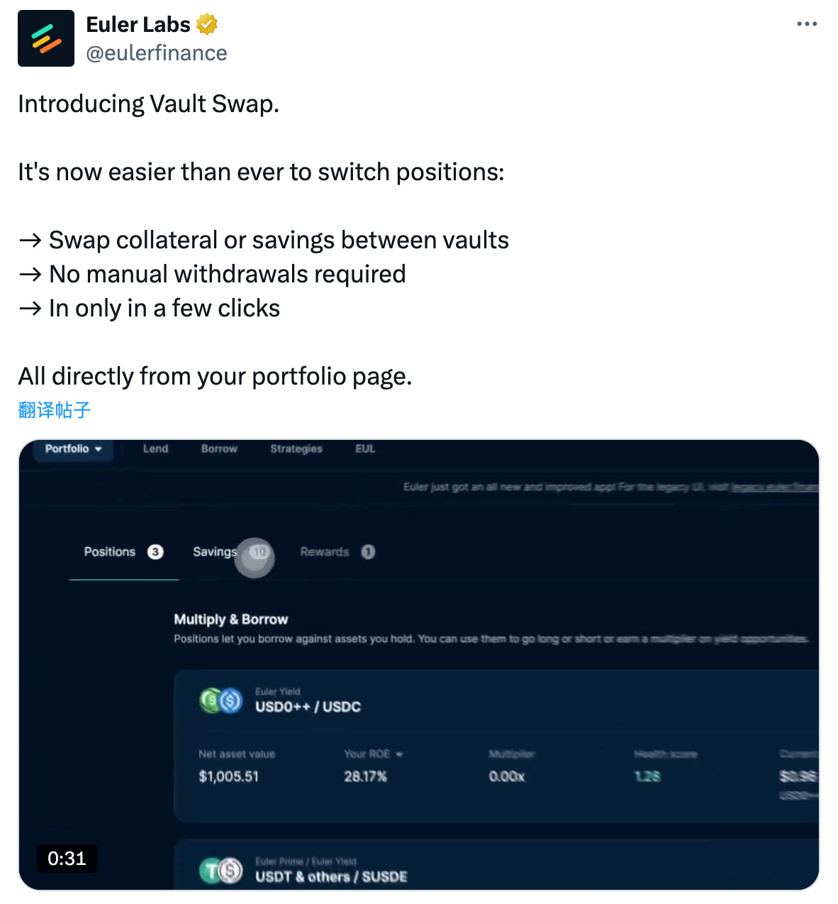Euler 上线 Vault Swap