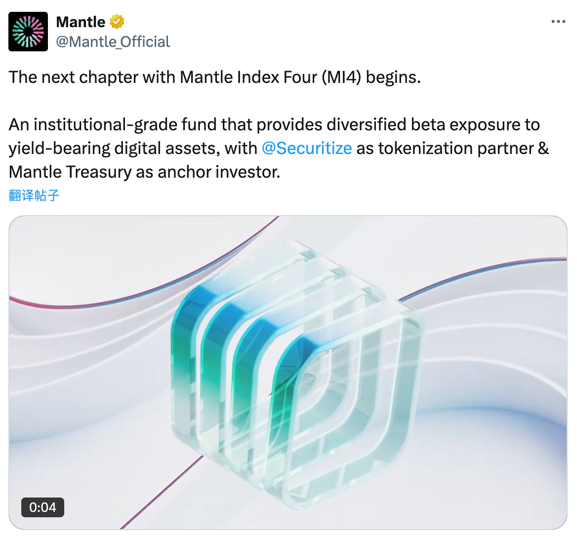 Mantle计划推出MI4指数,与Securitize合作