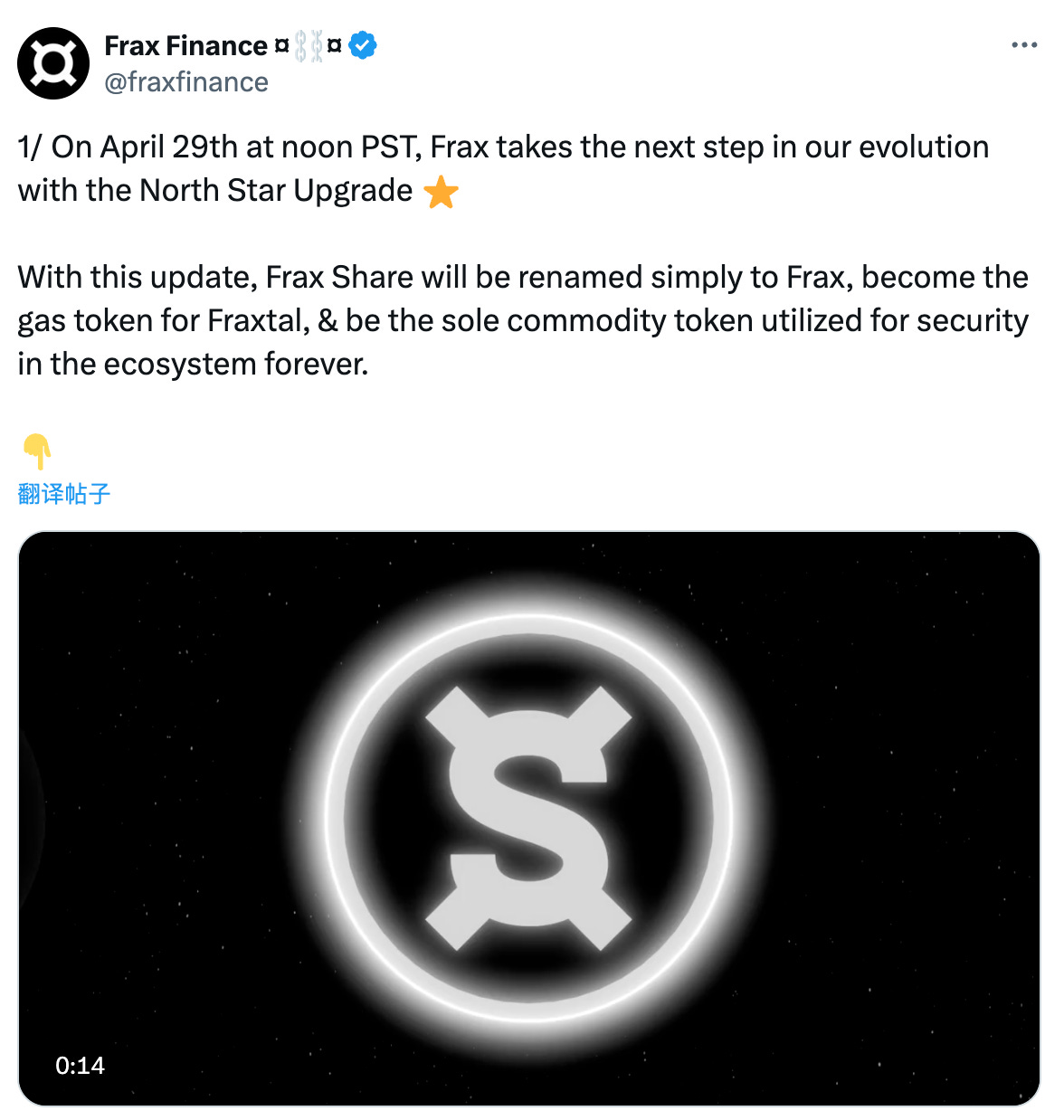 Frax在4月29日开启 North Star 升级