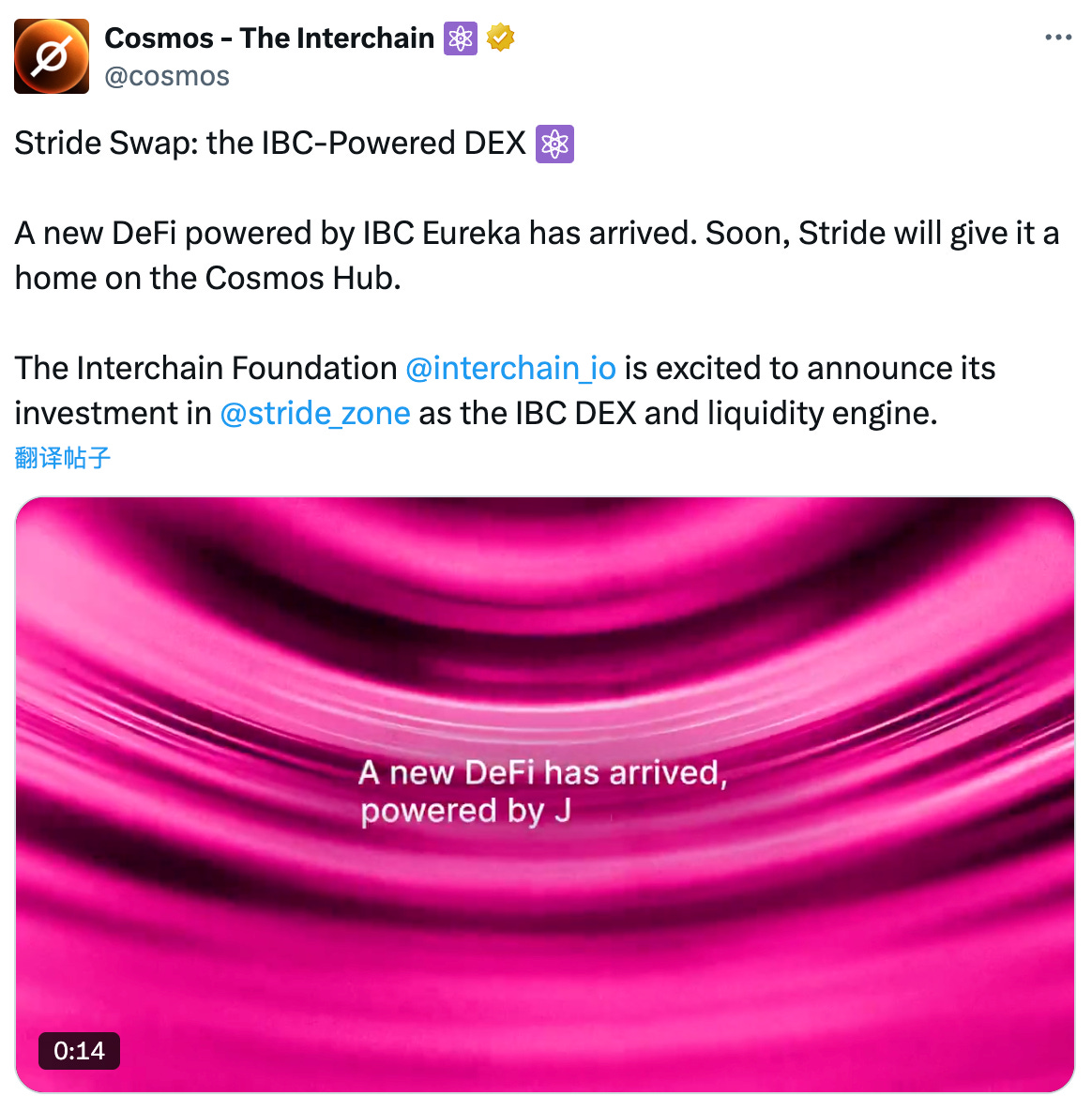 Stride最初是一个流动性质押协议,Stride Swap是一个产品线的扩展,自从Cosmos换血之后开始围绕Cosmos hub和IBC构建生态,这个是以前的老用户渴望已久的,基于IBC的DEX它的竞争对手是Osmosis和Thorchain,通过IBC来打通多链的原生资产互换,这个场景最大发挥出了IBC的优势,消息发布后Stride上涨了超过40%,市场给出的反馈也比较认可。如果这个改变能够带来资金流入,也会给Cosmos生态很多项目带来重生的机会。