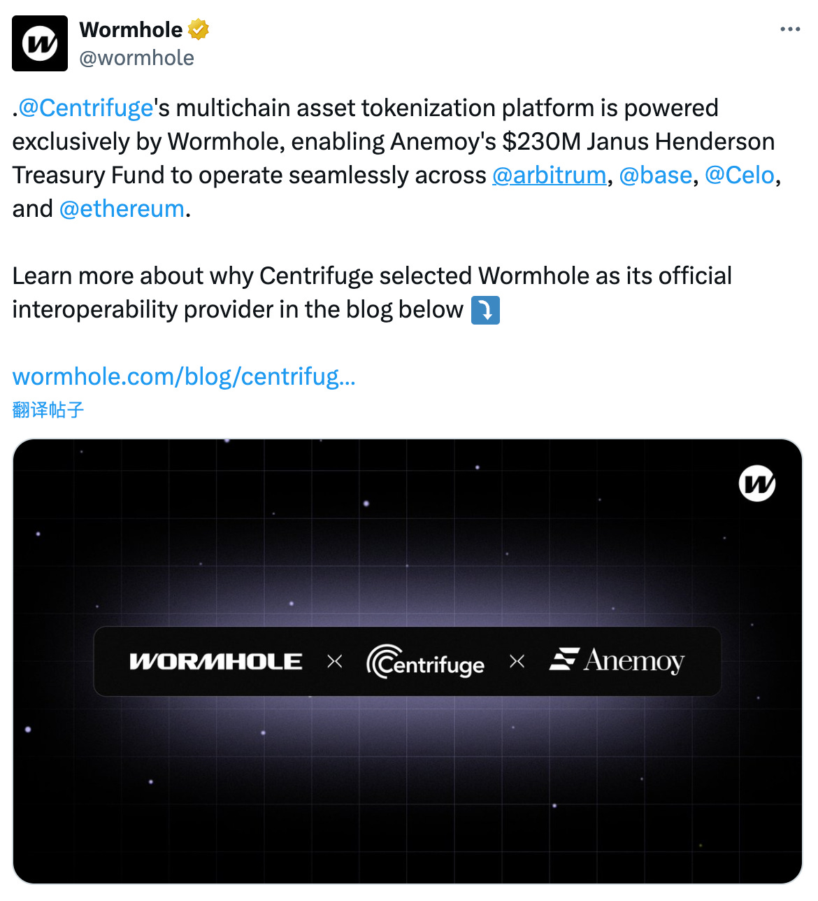 Centrifuge 的多链资产代币化平台由 Wormhole 独家提供支持