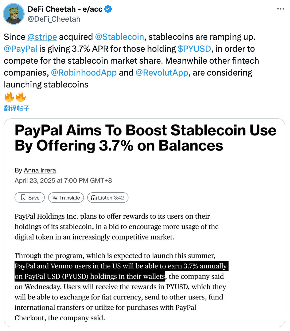 PayPal 通过提供3.7%的余额收益来推动稳定币使用