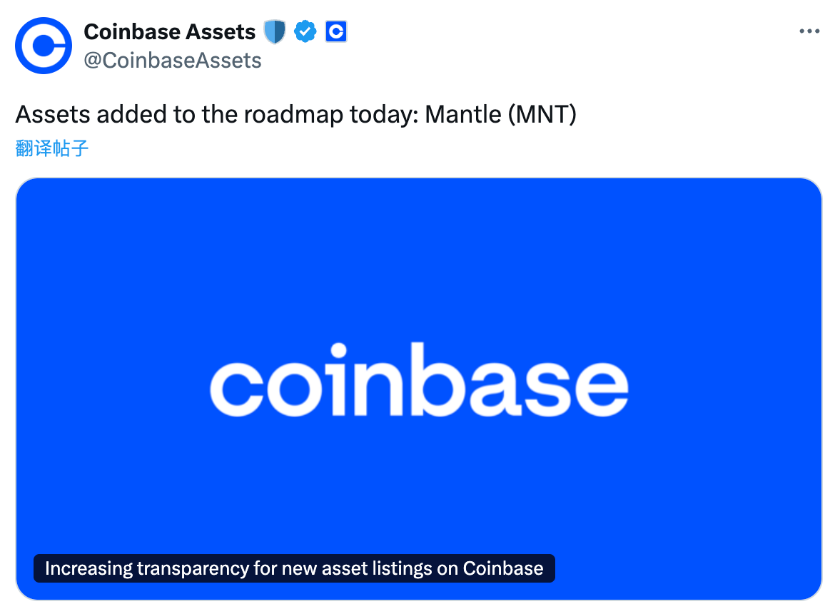 Coinbase将Mantle列入上币路线图