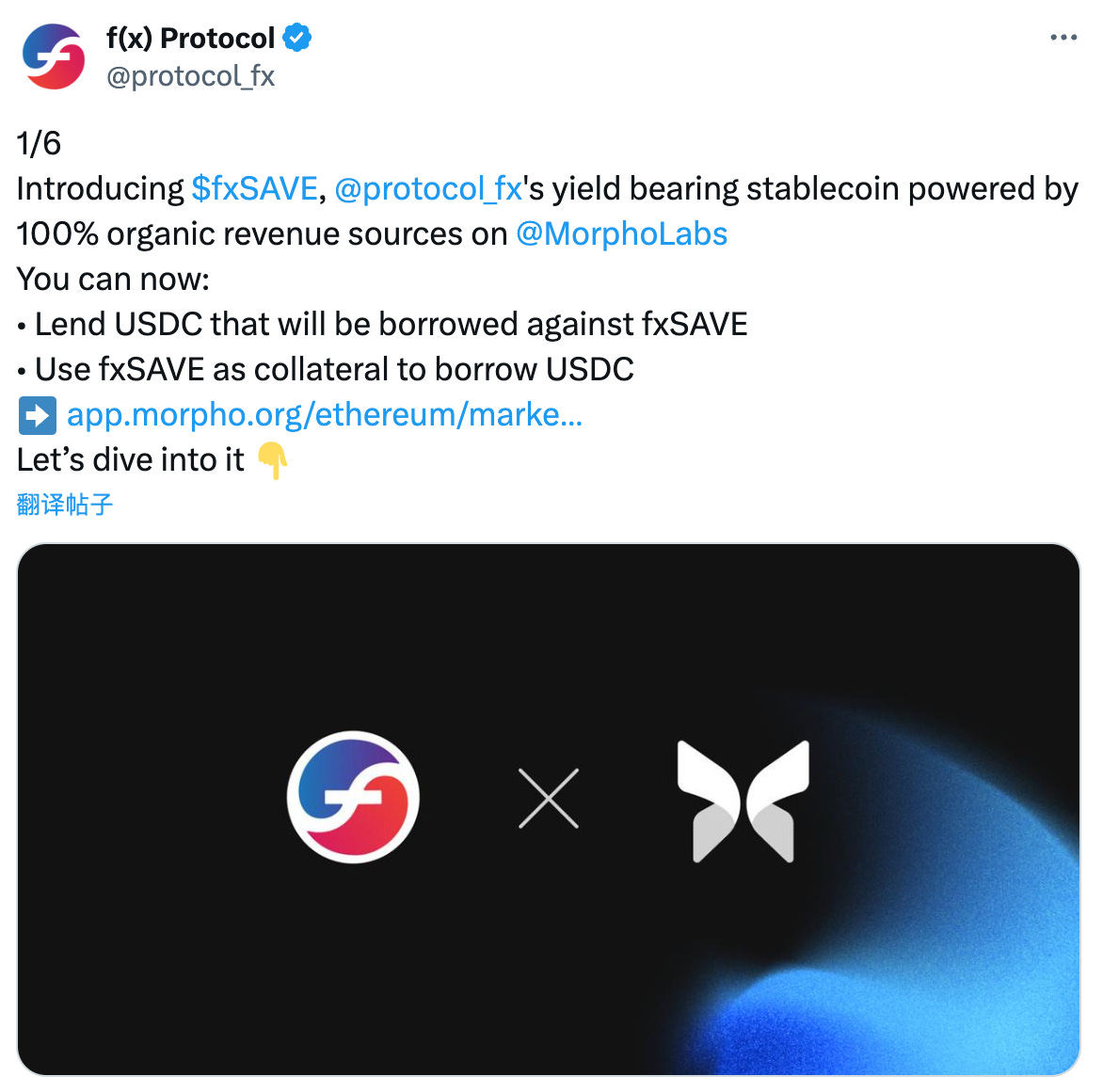 f(x) Protocol 推出 fxSAVE 并支持在 Morpho 上作为抵押品借贷